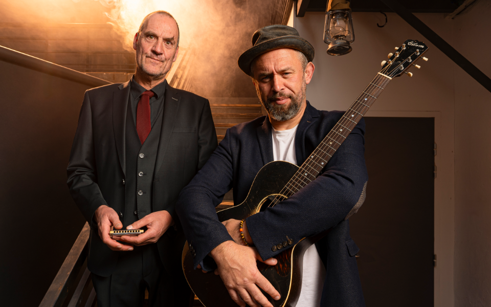 Après 3 ans de pause, le célèbre groupe de blues/rock Mountain Men est de retour dans sa formule initiale : le duo Mister Mat et Barefoot iano.
