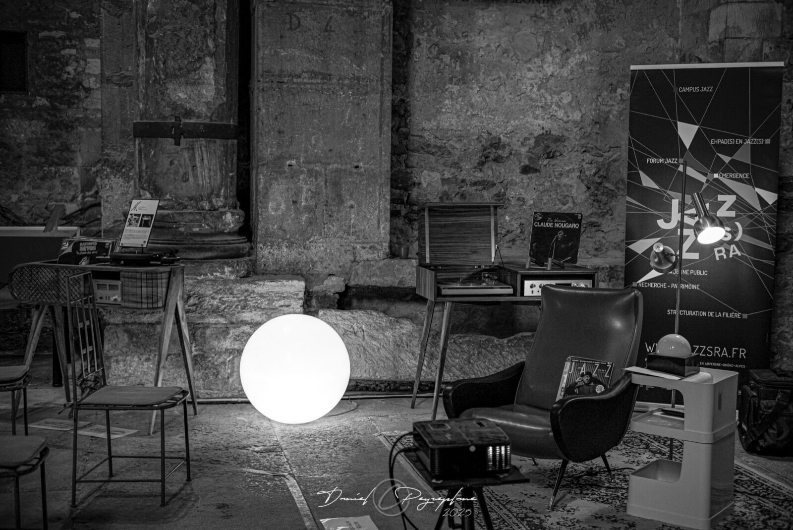 > Autour d’un volet médiation, nous avons mis en place une démarche d’expositions itinérantes débuté en septembre 2024 lors des Journées Européennes du Patrimoine au Château de Goutelas (Marcoux, 42), étendu à d’autres territoires en 2025 à travers des accueils au sein du Conseil Départemental de la Haute Loire, à l’Eglise Saint-Pierre – Futur Musée d’Histoire de Vienne à l’occasion du Festival Jazz à Vienne, au Domaine de la Garde dans l’Ain lors des Journées Européennes du Patrimoine 2025, et enfin au sein du CROUS de Clermont-Ferrand dans le cadre du Festival Off de Jazz en Tête. Une dynamique itinérante réussie afin de fédérer le réseau régional autour de notre objet de recherche qui se poursuivra tout au long de l’année 2026, rendez-vous à retrouver au sein de la rubrique dédiée.